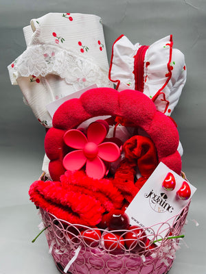 Coffret Cadeau Femme - Pyjama Imprimé Cerise & Accessoires | Édition Blanche