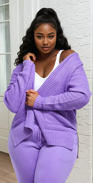 Lavender waffle fiber cardigan