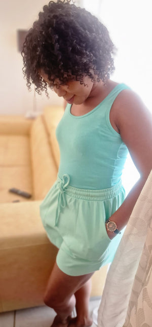 - Elastic waist shorts with drawstring : equipped with two side pockets , it combines comfort and functionality, perfect for all your activities.