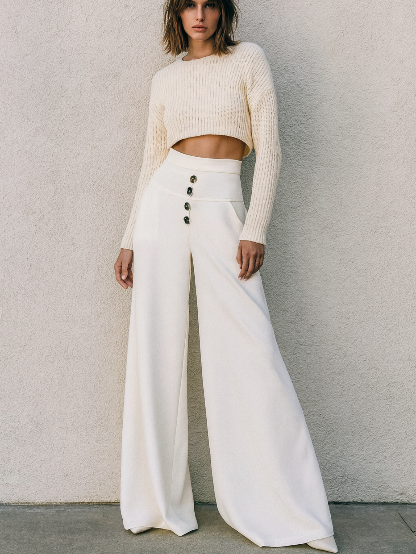 Pantalon large élégant taille haute MAMA