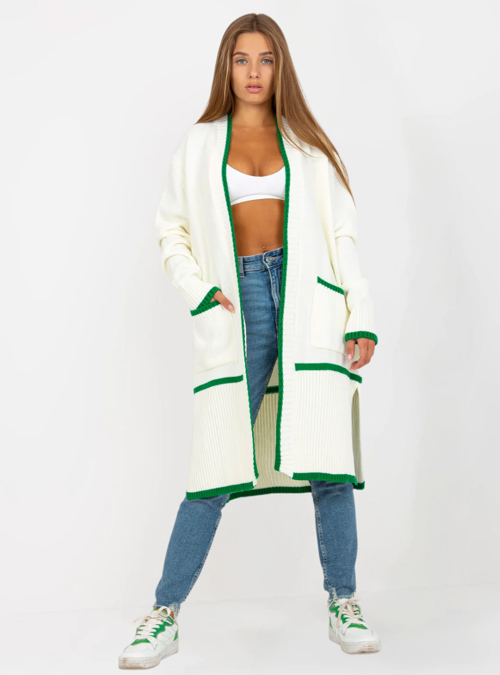 Adoptez un look chic et confortable avec ce cardigan long noir à bordures contrastées blanches. Parfait pour les journées fraîches, ce vêtement élégant offre des poches pratiques et une coupe fluide idéale pour superposer sur vos tenues casual ou habillées. Associez-le avec un jean ou un pantalon ajusté pour un style intemporel.