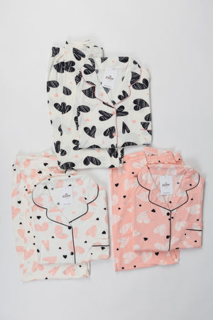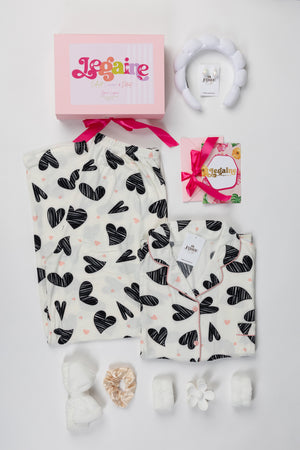 Pyjama Femme à Cœurs – Cadeau Cocooning Confort (Noir, Rose, Blanc)