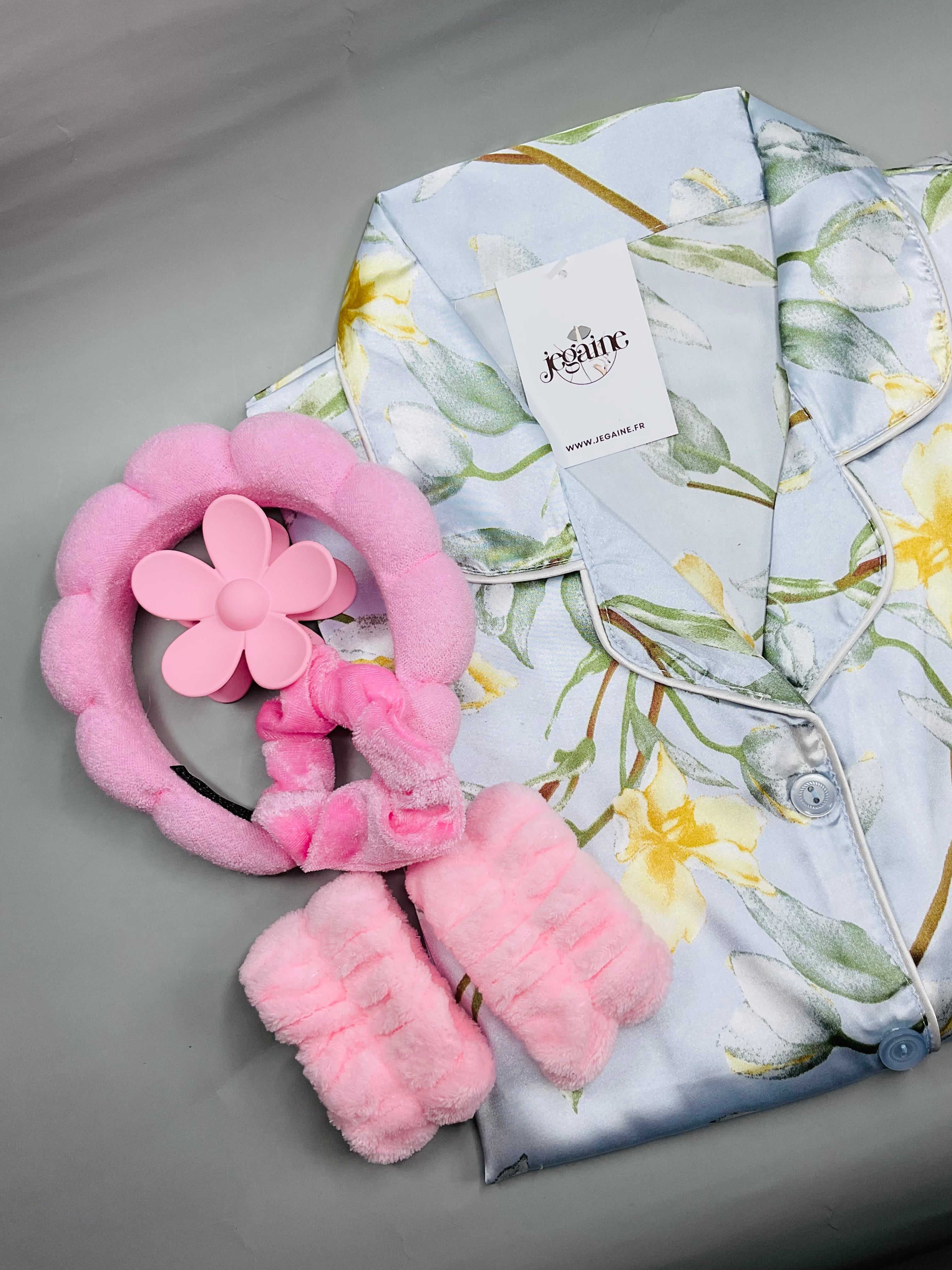 Coffret Ensemble Pyjama avec Imprimé fleuri +: Set serre-tête vert