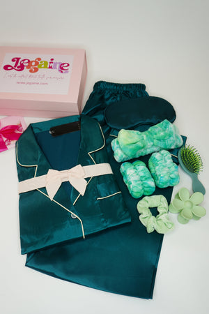 Pyjama longue manches satin vert émeraude