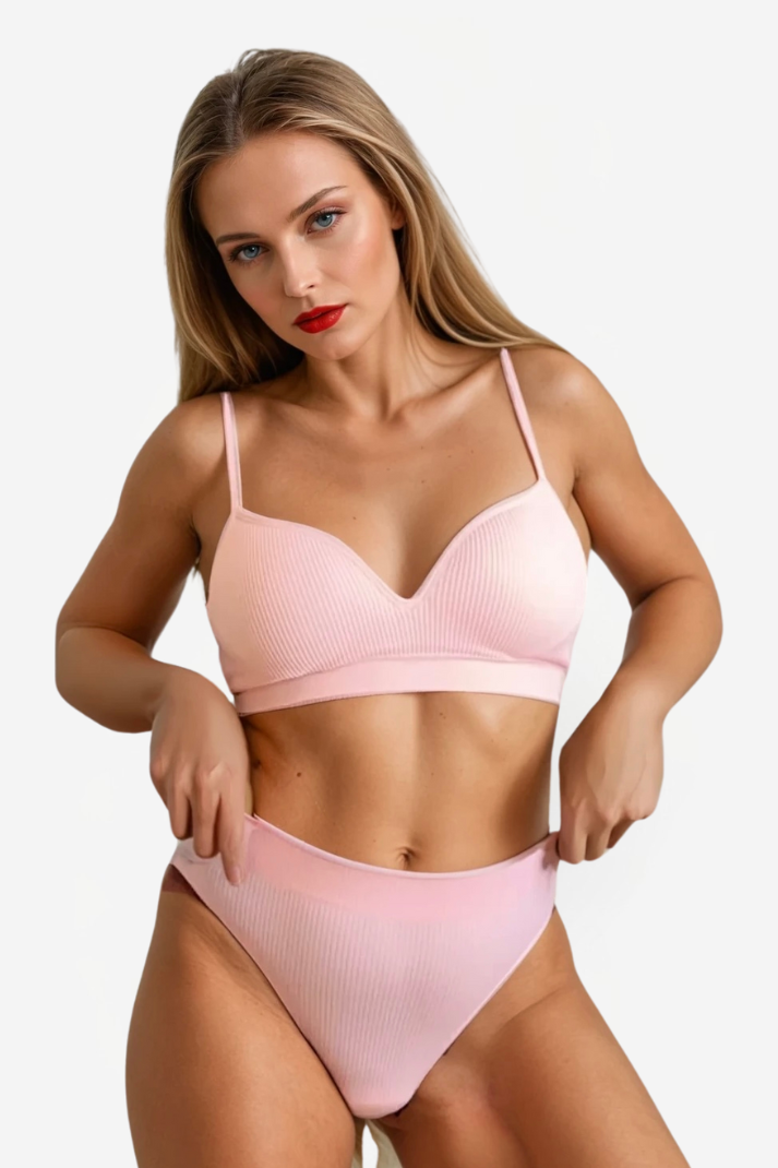 Ensembles soutien-gorge sans armature à bretelles fines réglables, associés à des culottes à dentelle sur les côtés. Chaque ensemble est conçu pour offrir un confort optimal tout en ajoutant une touche d'élégance à votre garde-robe.