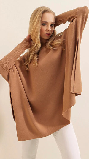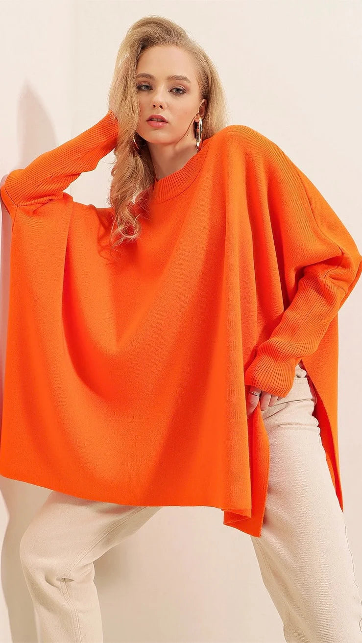 Poncho-Pull Oversize en Tricot – Col rond