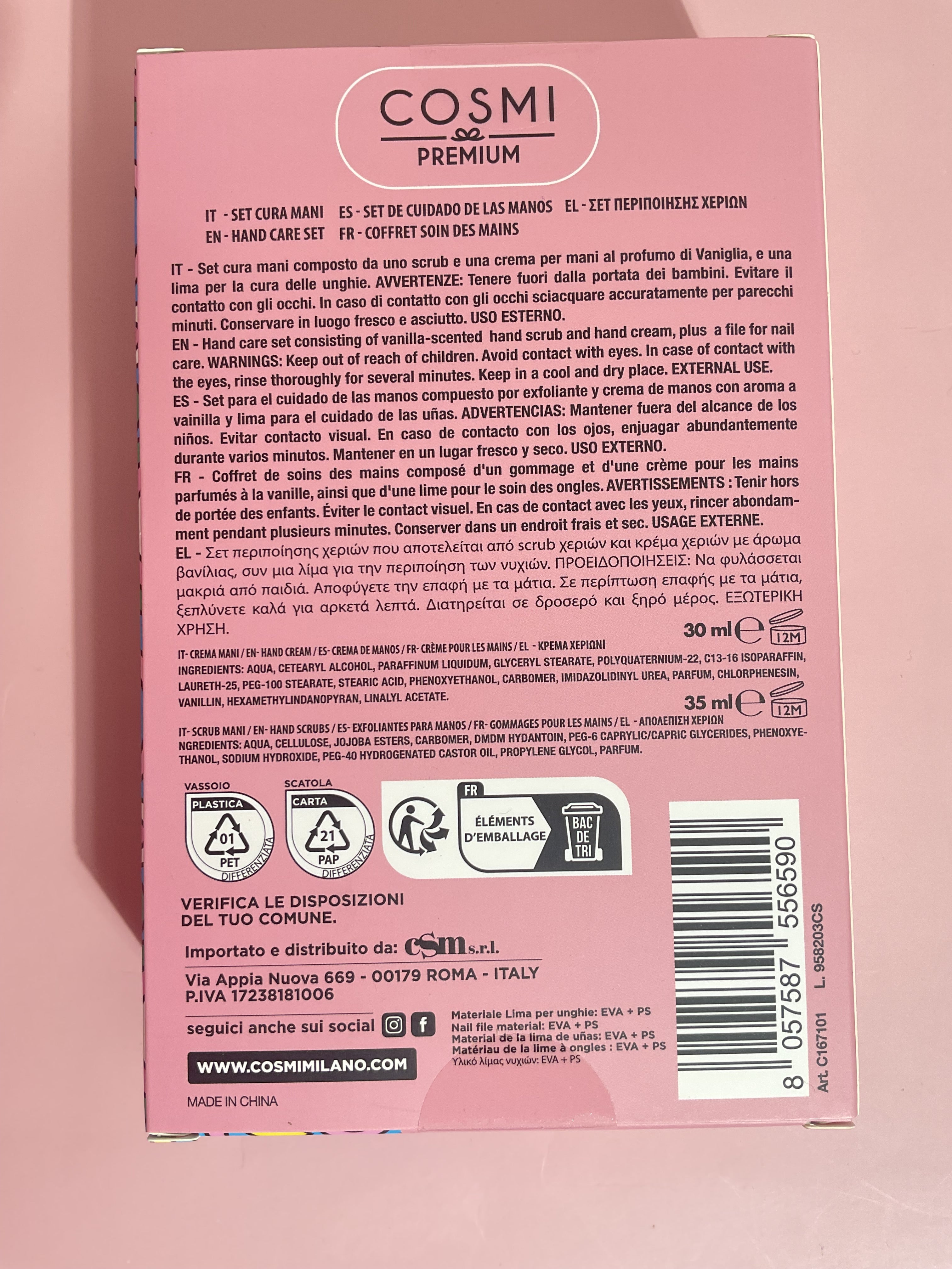 Prenez soin de vos mains avec notre Hand Care Set COSMI Premium, un coffret complet conçu pour offrir douceur, confort et parfum délicat de vanille.