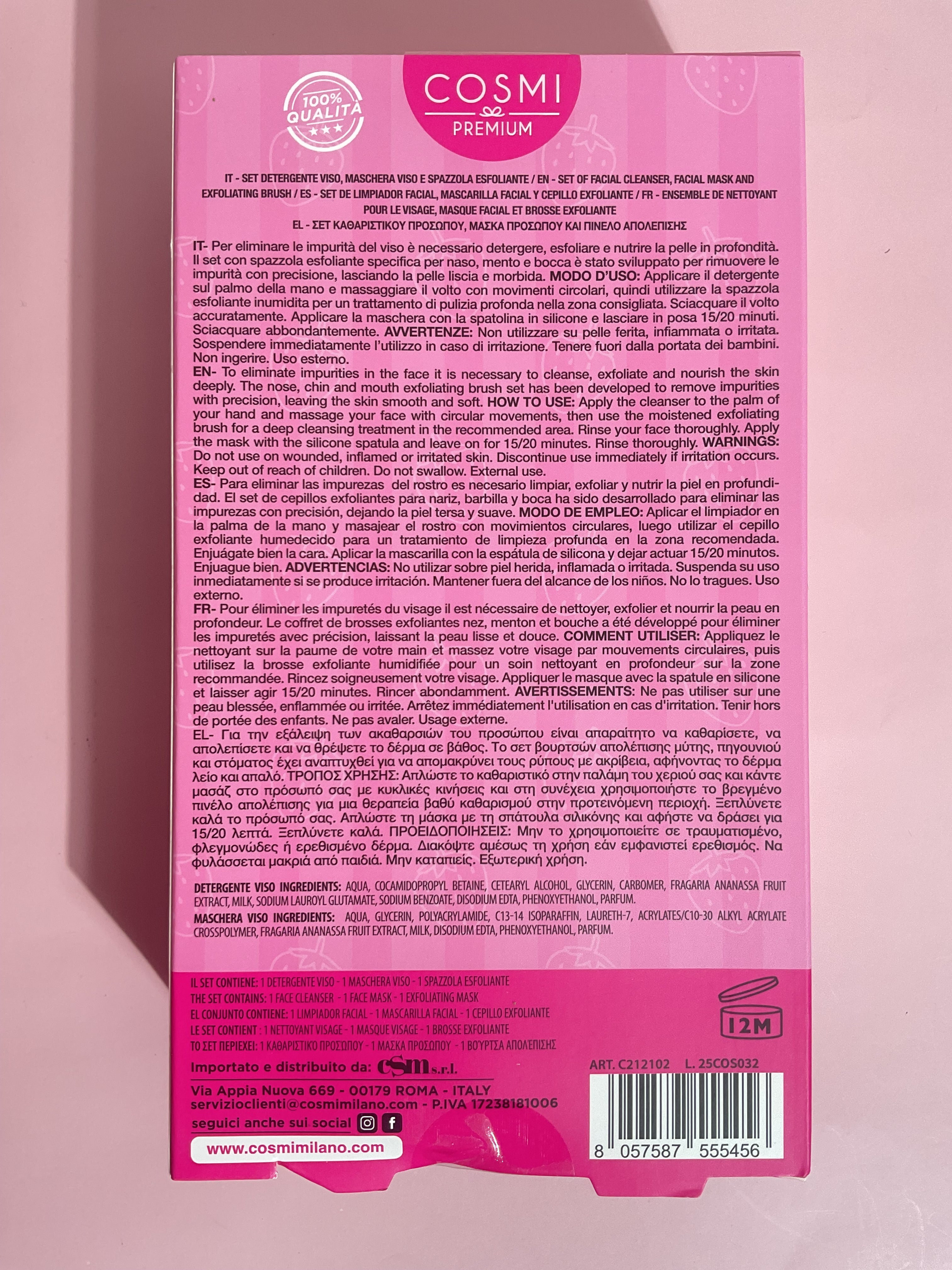 La brosse exfoliante n’est pas un produit cosmétique et ne possède donc pas d’INCI.